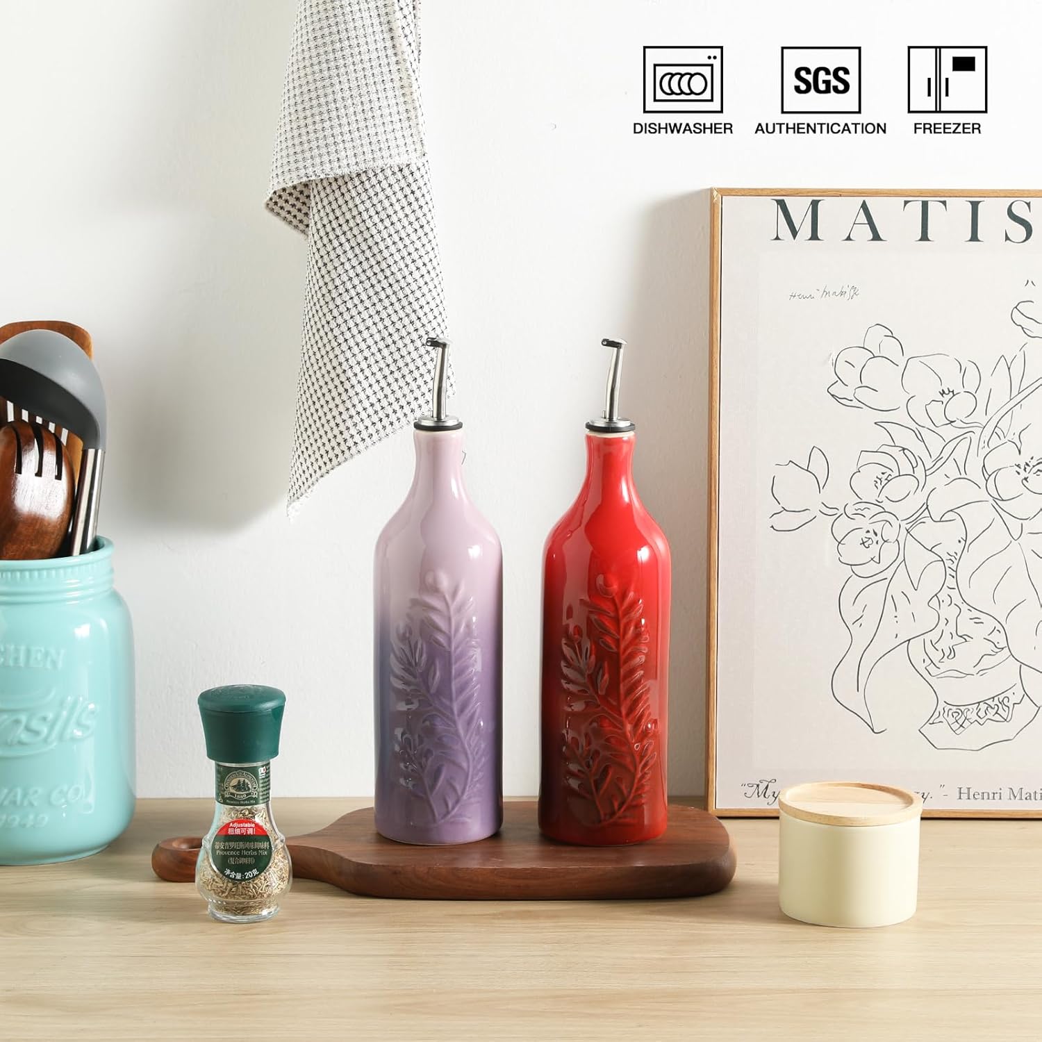 Sweejar Large Olive Oil Dispenser Bottle with Spout, 24 Oz Ceramic Dispenser for Kitchen, Relief Opaque Cruet, Container for Cooking, EVOO, Avocado Oil, Vinegar, Pack of 1(GradientRed)