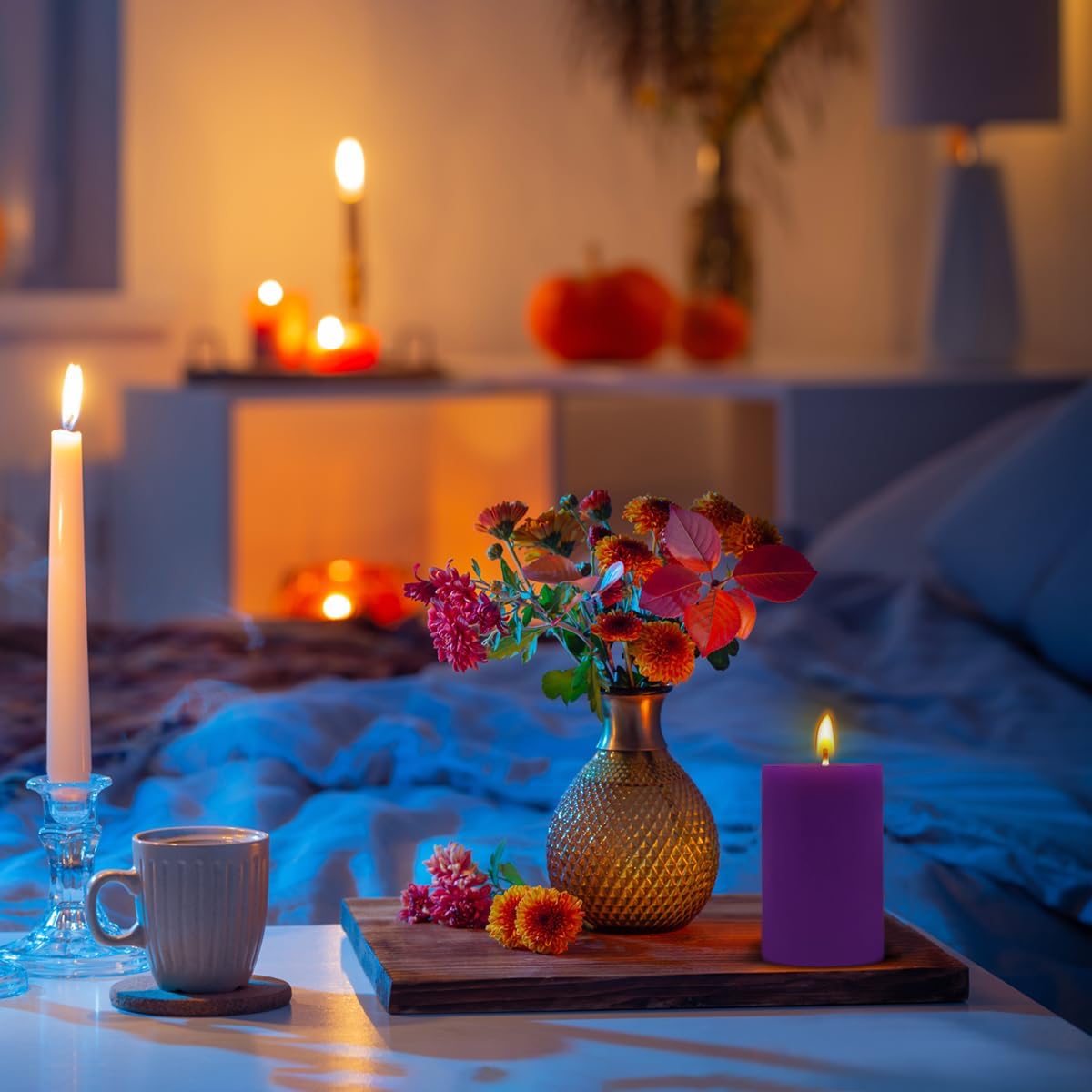 - Many Decorative Purposes: The non-toxic scentless 2 inch diameter pillar candles are perfect for romantic dinners, power outages or simply to add warm light to a dark night.