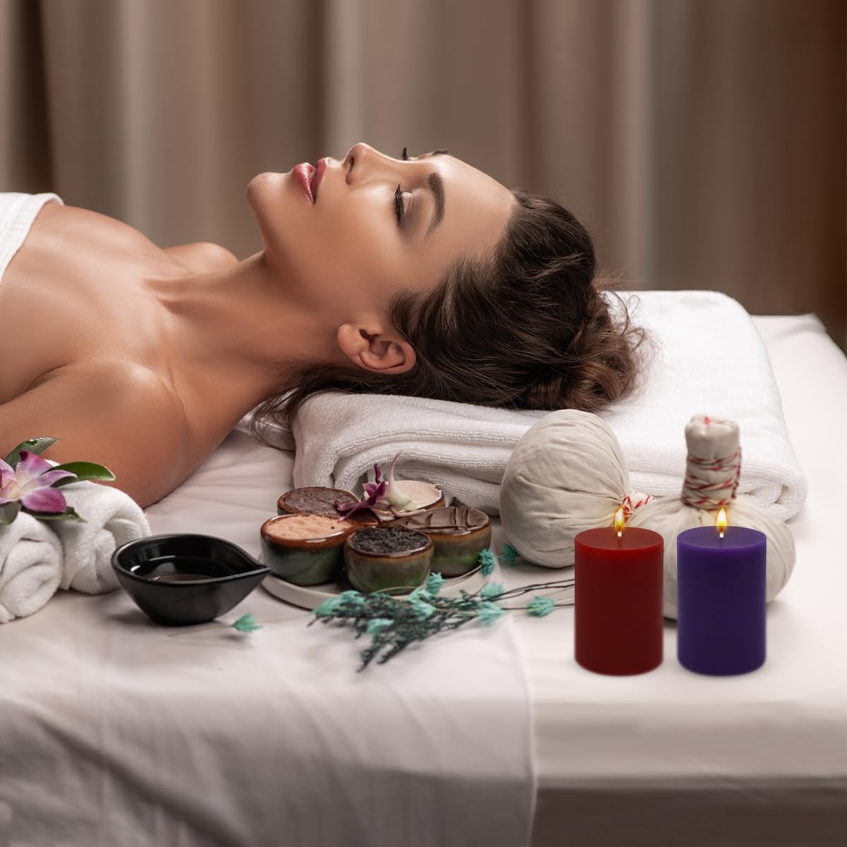 - 4 Different Colors: The whole small 2x3inch candles set includes 1pc red, 1pc brown, 1pc purple and 1pc navy blue colored pillar candles for home decoration;