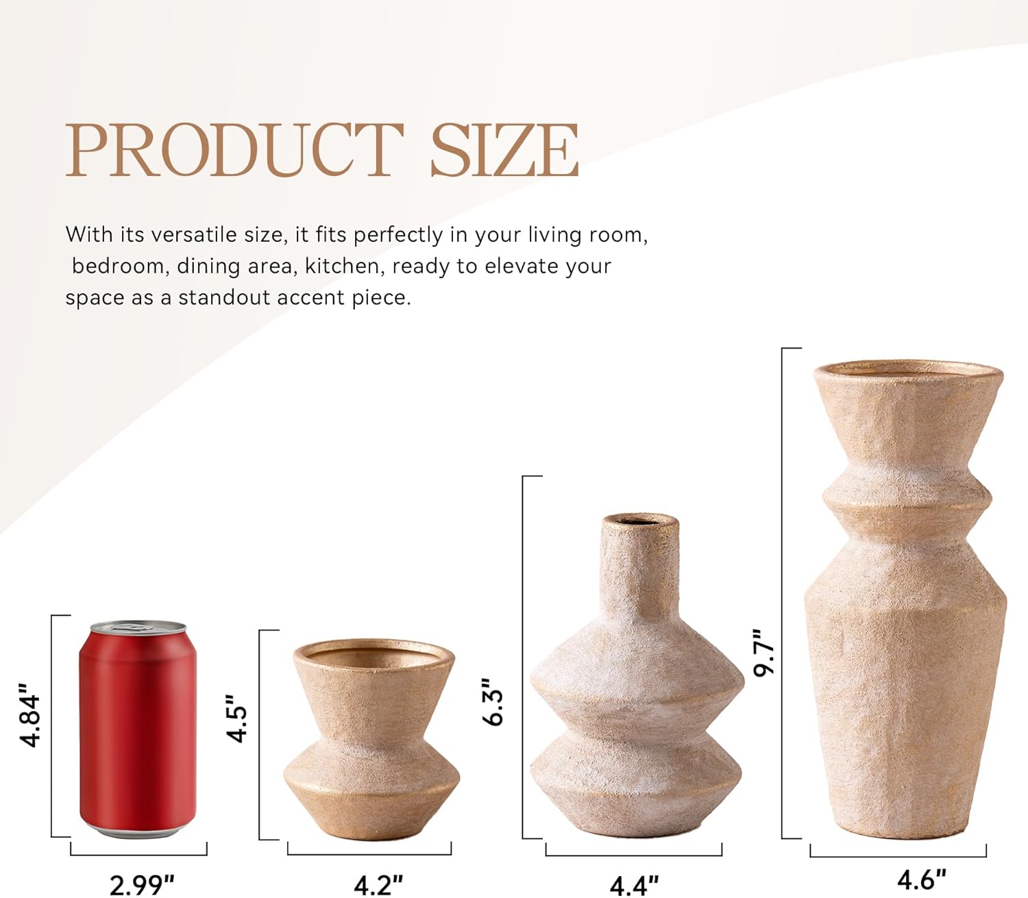 - 【Perfect Size】Large: 4.6"L × 9.7"H;Medium: 4.4"L × 6.3"H;Small: 4.2"L × 4.5"H. Featuring intricate detailing and a rich texture, this vase complements a variety of home styles—farmhouse, rustic, country, even modern. It effortlessly blends in with existing furniture and accessories, adding a timeless charm and harmonious look to your space.