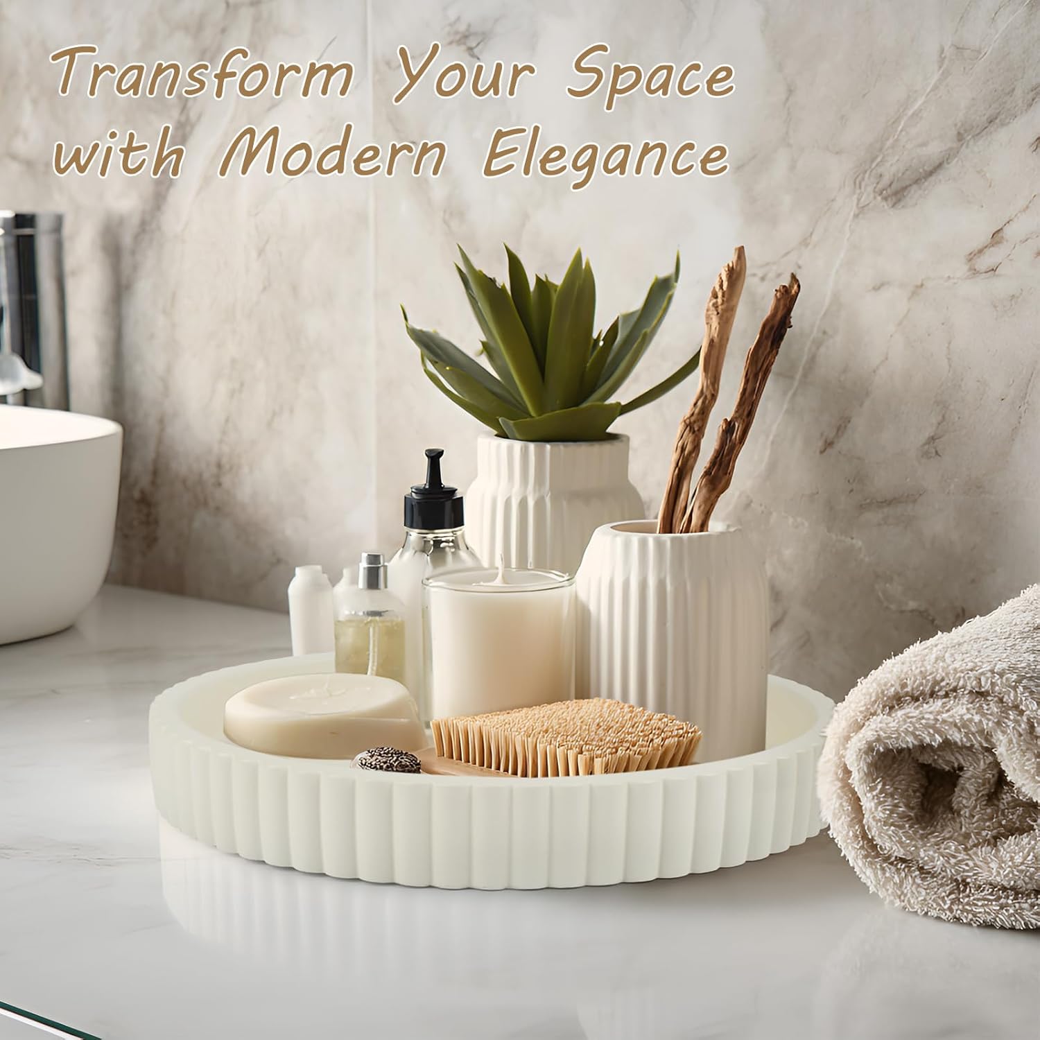 - STYLISH MINIMALIST DESIGN– Elevate your home with this coffee table centerpiece tray. Our fluted circle tray is perfect to use as a decorative serving tray.Fits perfectly on round coffee tables, ottoman trays, or as a decorative centerpiece. Non-slip base protects surfaces.
