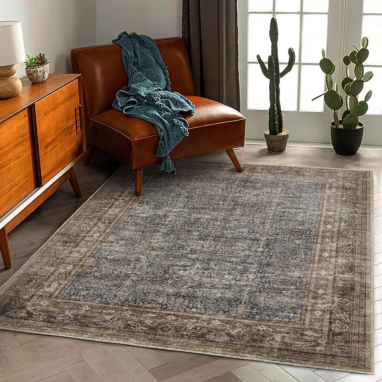 Area Rug 5'x7' Washable Rug Traditional Floor Cover Thin Retro Kitchen Indoor Distressed Non Slip Carpet for Living Room Bedroom Dining Room