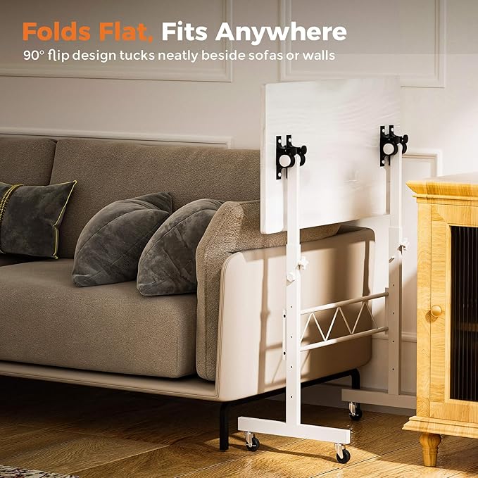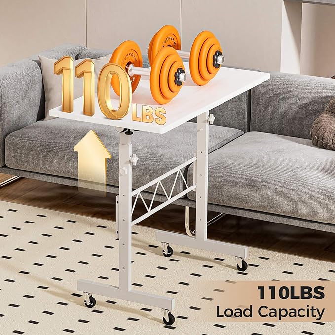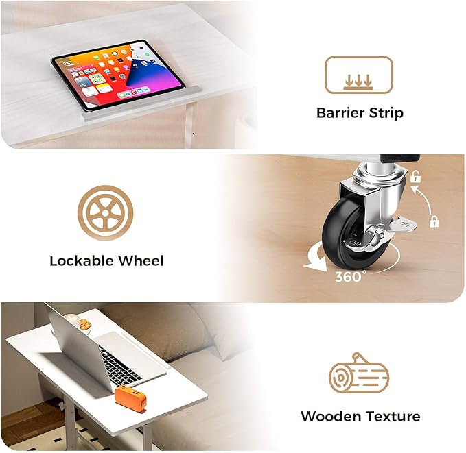 - 【Portable Mobile Desk】Smooth PU rubber wheels roll quietly while protecting hardwood/tile surfaces from scratches. Easily transition between workspaces with one-touch wheel locks that keep your desk rock-steady during use. Perfect for noise-sensitive environments like home offices or shared spaces - move freely without disruptions