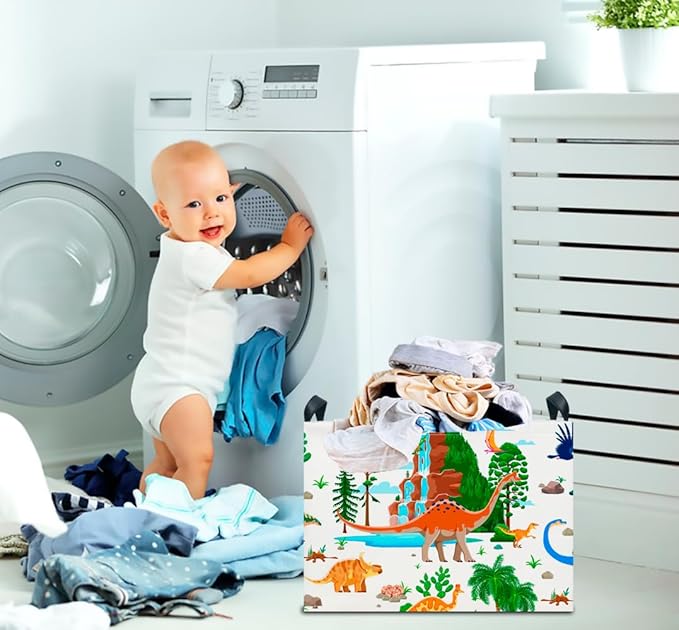 CLOCOR Rectangular Storage Basket Empty,Gift Basket, Waterproof Storage Bin with Handles, Room Decor(Ancient Dinosaurs)