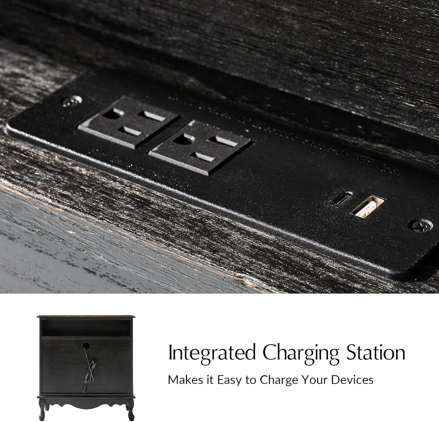 - Built-In Charging Station: Power multiple devices effortlessly! Concealed rear station with two AC outlets and two USB ports keeps cords organized while charging phones, lamps, and tablets simultaneously.