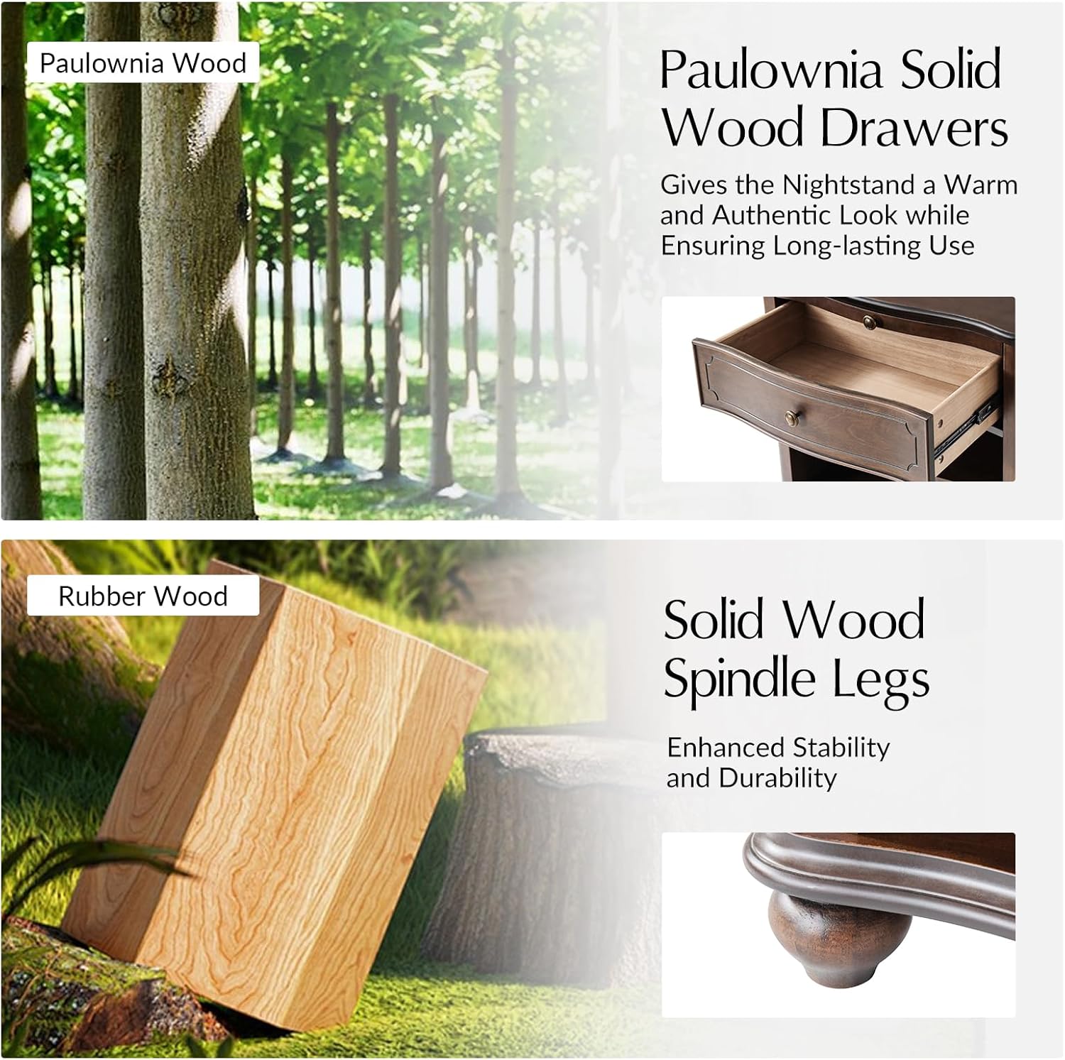 - Wood Construction - Crafted from durable Paulownia wood drawers and rubber wood spindle legs for authentic warmth, enhanced stability, and long-lasting durability.