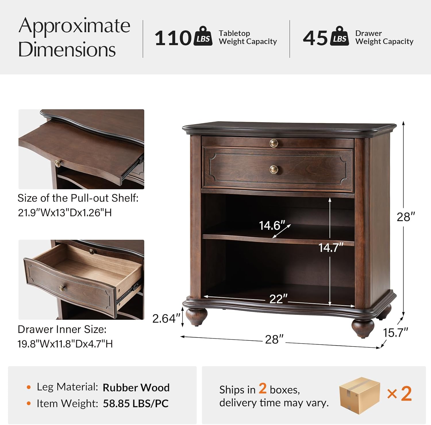 - Pull-Out Shelf Design - Features a cleverly integrated pull-out shelf, offering an extra platform for nightly essentials like phones, books, or glasses.
