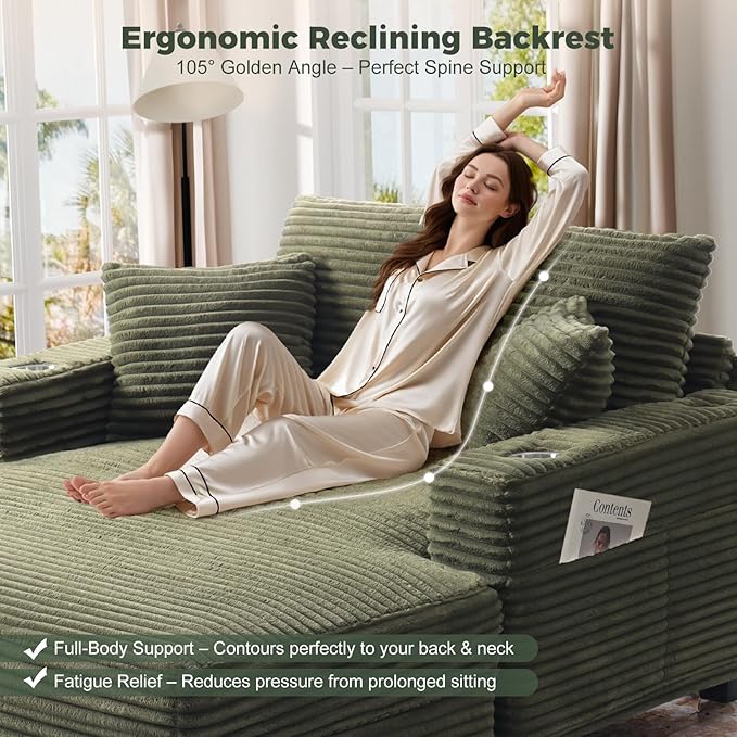 - 【High density foam and spring base】: this lounge sofa is made of D28 High rebound memory cotton and solid-wood frame. Make this recliner more supportive and less likely to collapse; Better elasticity and more comfortable.Suitable for long-term use.