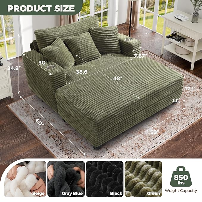 - 【Multi-purpose Lounge】:With an overall size of 59.45"D x 52.95"W x 34.84"H, this oversized chaise can be used as a lounge chair or sofa bed, making it ideal for leisure places such as living rooms, bedrooms, movie rooms, game rooms and study rooms. Whether it's a nap, a family gathering or spending happy hours with friends, this large recliner chair is your perfect choice for comfort and relaxation!