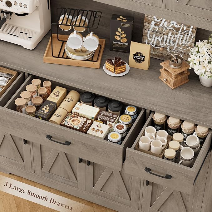 - Special Feature : 55" Wide Kitchen Hutch, Adjustable Shelf, with Charging Station, with Large Countertop, with Storage Drawers 55" Wide Kitchen Hutch, Adjustable Shelf, with Charging Station, with Large Countertop, with Storage Drawers