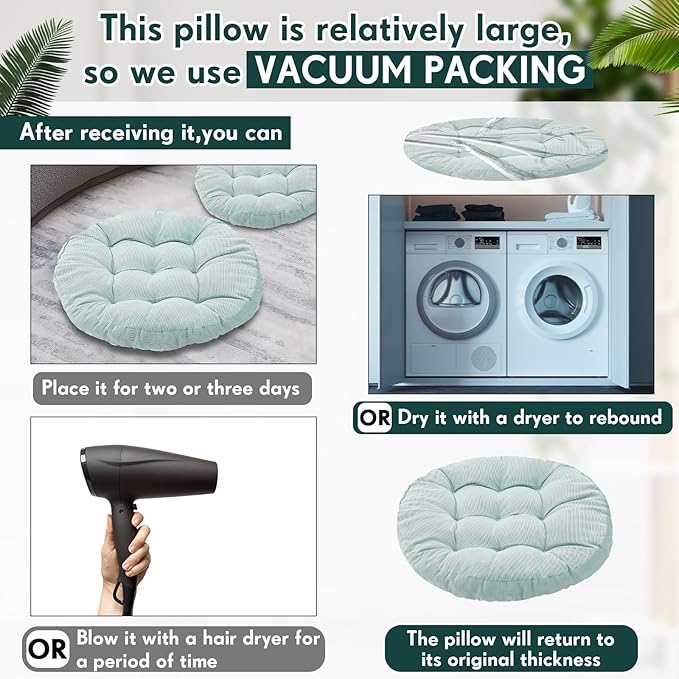 - Quickly Recover: After receiving the product, you can gently pat our big soft floor cushion pillow or leave it in a ventilated area for a few hours, or you can use a dryer to help it return to normal thickness, easy and convenient, to add a touch of elegance