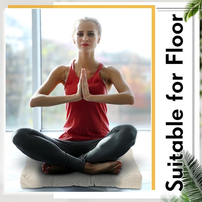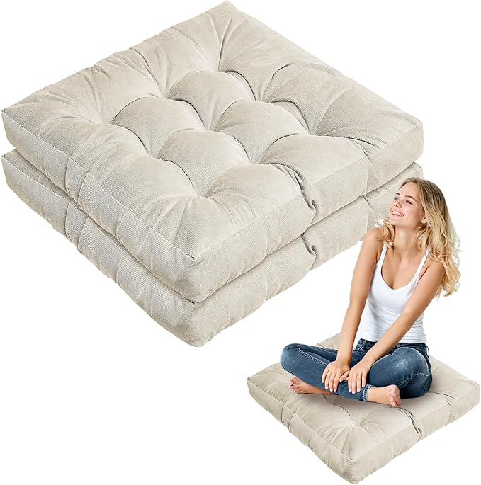Jerify 2 Pcs Beige Floor Pillows Cushions 22 x 22 Inch Round Square Large Meditation Floor Pillow for Adults Meditation Cushion for Seating Gift Christmas (Square)
