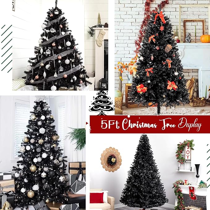 5ft Artificial Christmas Tree, Arbol de Navidad with 600 Branch Tips, Fake Christmas Tree, Premium Spruce Xmas Tree with Fold-Able Metal Base Stand-Black