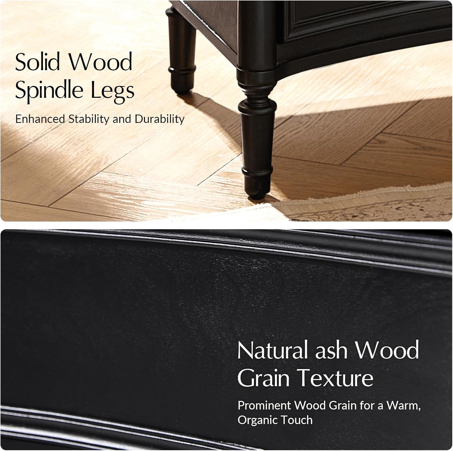 - Wood Veneer Finish: Crafted with solid wood legs for stability and a durable wood veneer surface, this nightstand offers lasting quality and style, blending strength and elegance for everyday bedroom furniture.