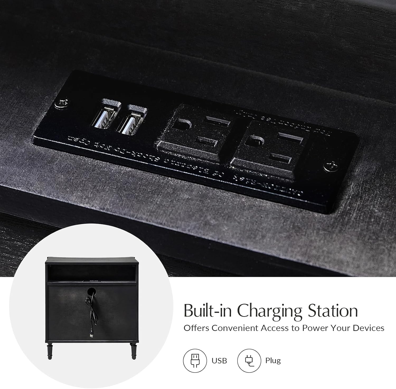- Convenient Charging Station: This nightstand includes 2 AC outlets and 2 USB ports, letting you charge phones, lamps, and devices conveniently. Reduce messy cords and keep your bedside neat and organized every day.