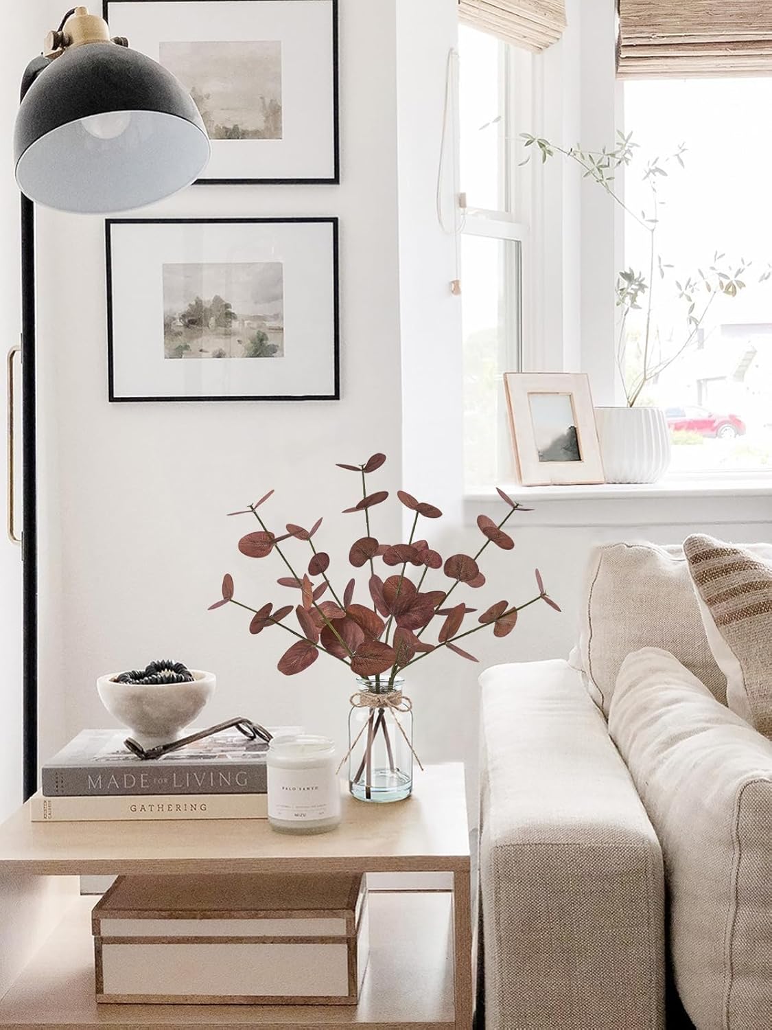 - Maintenance-free: The artificial green plant stems require no water, sunlight, or fertilizer, will never wilt or shed, stays green year-round.Eucalyptus leaves are easy to clean; simply wipe with a soft dry cloth to keep them neat and tidy.
