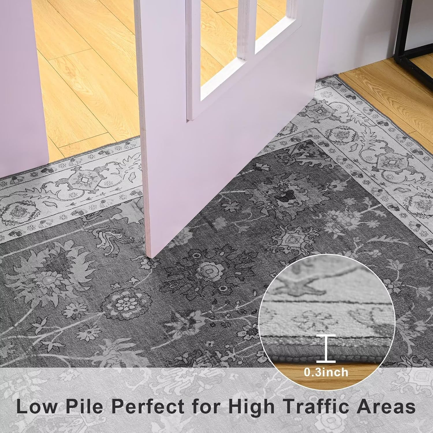 - Low Pile Ultra-Thin Design: This vintage floral rug is only 0.3'' thick with soft surface. Non-traditional thick and stiff profile for easy cleaning and handling.Suitable for high-traffic areas, can placed in bedroom, living room, and underneath furniture