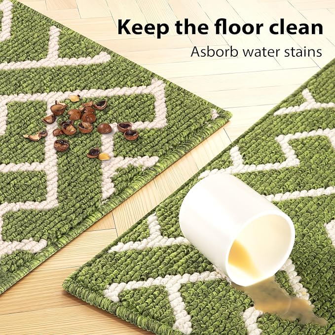 - Extra Absorbent & Protection: Our kitchen rugs and mats are made of premium Polypropylene fibers and extremely dense yarns, which can effectively absorb spilled oil and water, protect your floor from oil, moisture, sauces or food particles, keeping your kitchen clean and tidy. The soft surface of kitchen rugs can also protect the floor from your beloved tableware breaking or damaging the floor