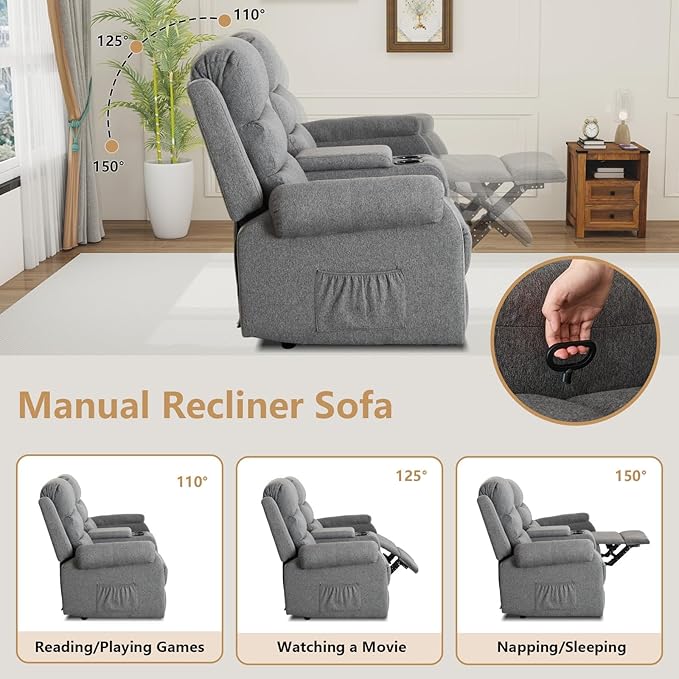 - Manual Reclining Mechanism: Indulge in customizable comfort with manual reclining mechanism. Whether it's an afternoon nap or a movie marathon, you can easily adjust the backrest and footrest to find the perfect reclining angle with a simply pull of the pull ring on the side of the seat by hand