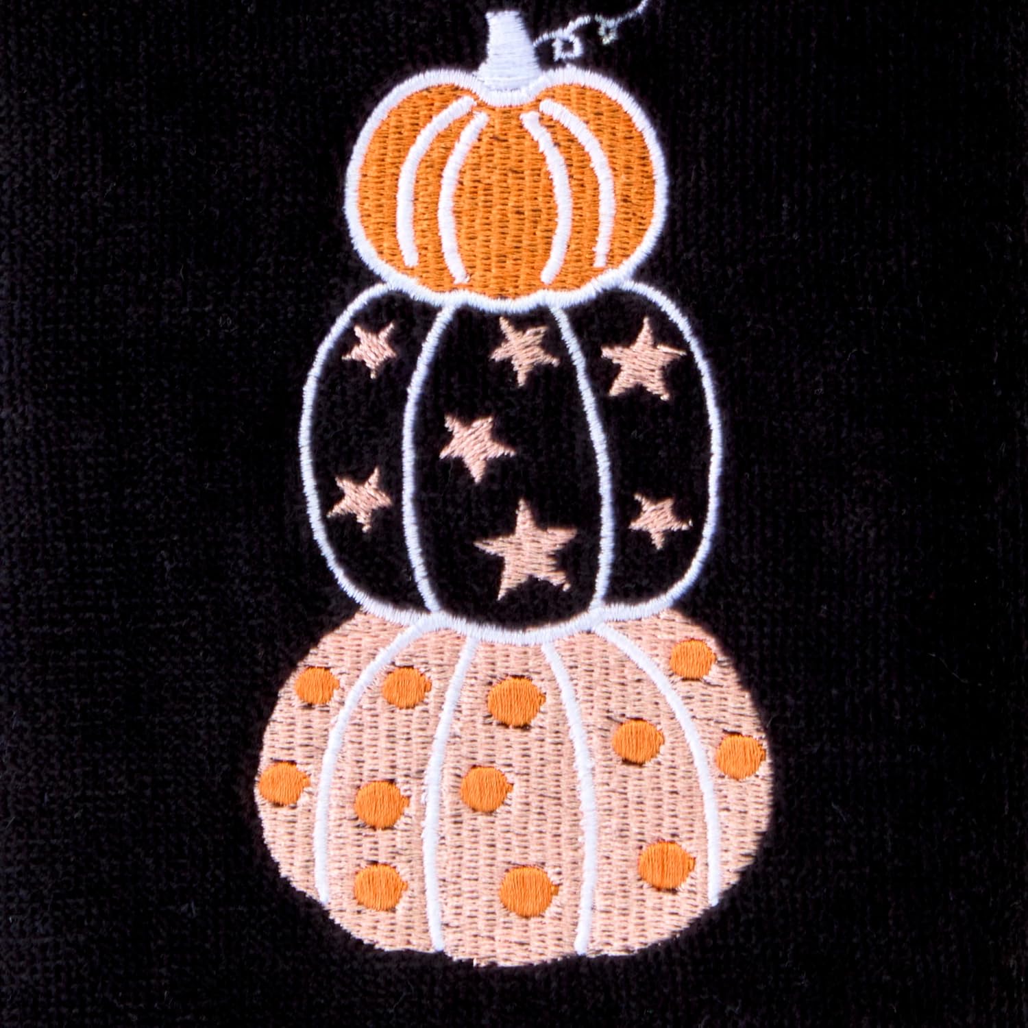 SKL Home Halloween Stacked Pumpkins 100% Cotton Embroidered 2pc Hand Towel Set, Decorative for Bath/Kitchen/Bar & Gift, Black