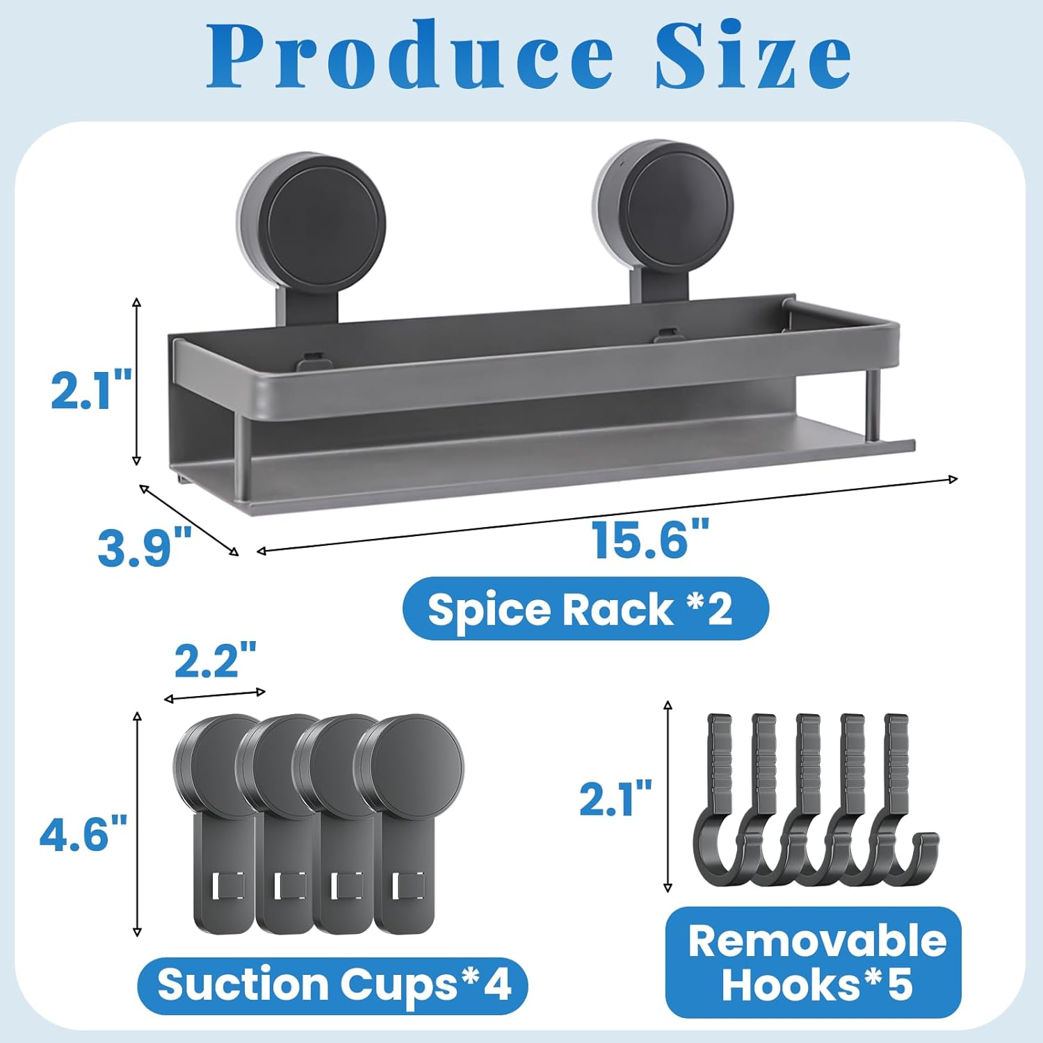 - SUPERIOR WEIGHT-BEARING CAPACITY: The 2-piece shower caddy is equipped with hooks with innovative and powerful suction cup technology, which has a weight-bearing capacity of up to 44 pounds(Holds up to 22 lbs. each), ensuring that the items are stable and do not fall off. Super suction makes it more secure and long-lasting, can organize and store various sizes of spice bottles, toiletries, wipes, snacks, etc., brings convenience and safety to the home