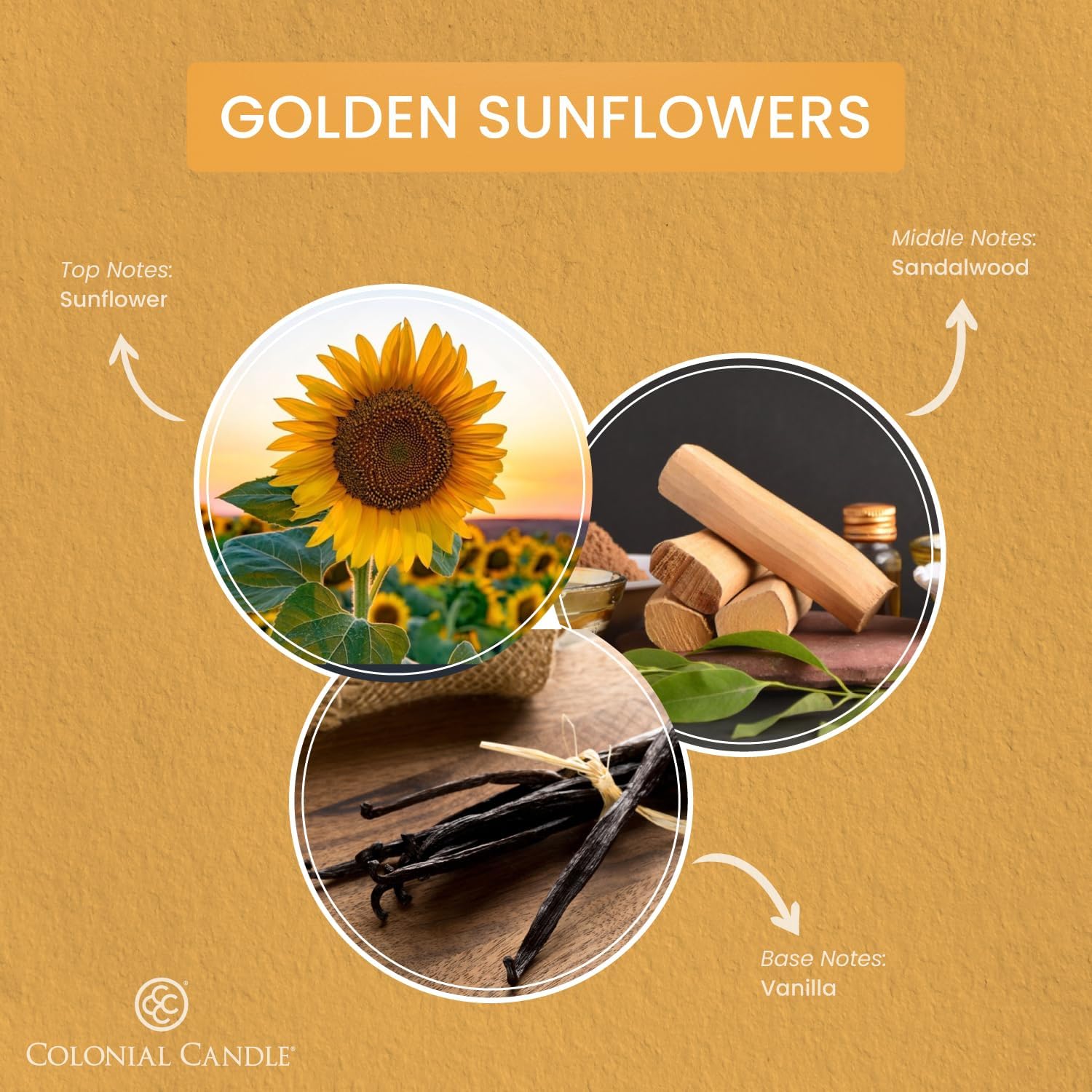 Colonial Candle Golden Sunflowers Scented Jar Candle, Pop of Color Collection, 3 Wick, 14.5 oz - Up to 60 Hours Burn