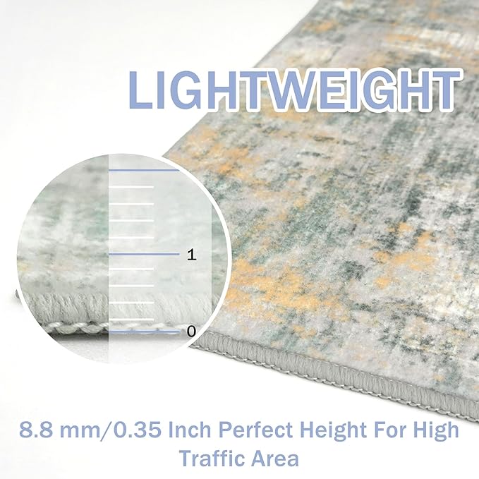 - Key Attribute: Size: 3' x 5'(36"x60"); Style: Printed Abstract Modern; Thickness: 0.35 in.; Color: Light Green, gray, orange. Note: Due to differences in computer monitors, the rug colors may vary slightly