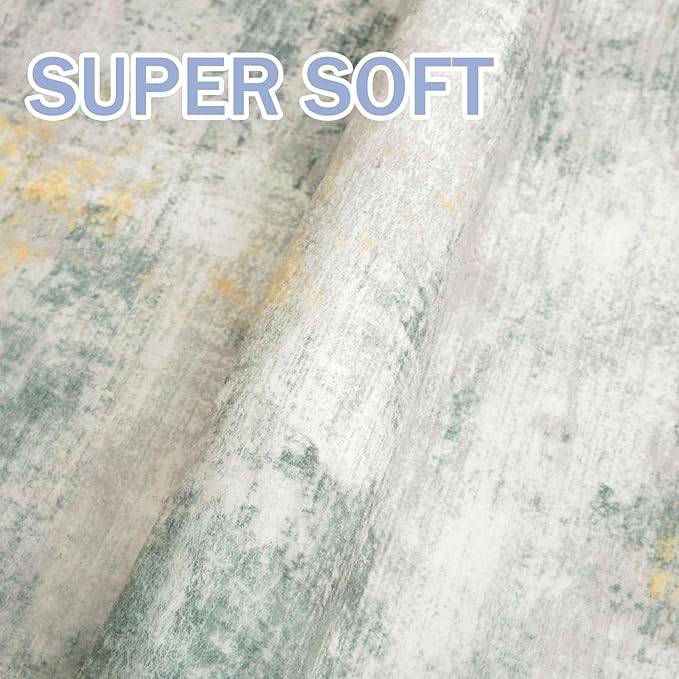 IOHOUZE Abstract Area Rug 3x5 Ft Washable Rugs for Entryway Indoor, Non Slip Kitchen Rug Printed Faux Wool Throw Rugs, Indoor Door Mat for Door Entrance Foyer Living Room, Light Green/Gray/Orange