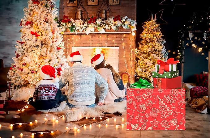 CLOCOR Rectangular Storage Basket Empty,Gift Basket,Waterproof Storage Bin with Handles,Room Decor(Red Christmas)