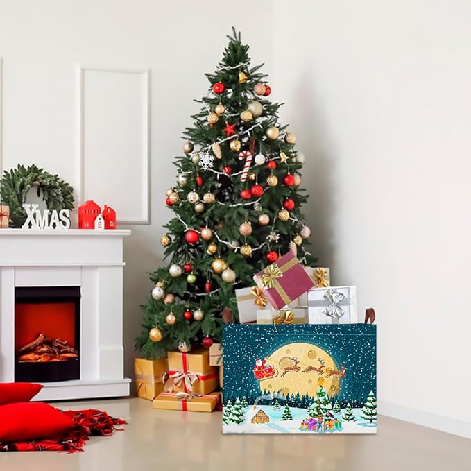 CLOCOR Rectangular Storage Basket Empty,Gift Basket,Waterproof Storage Bin with Handles,Room Decor(Sled Christmas)