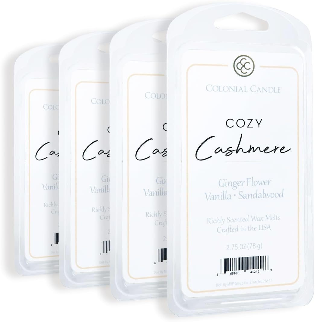 Colonial Candle Cozy Cashmere Scented Wax Melts, Wax Melt Warmer Cubes, Long Lasting Scented Wax Warmer Cubes, 4 Pack, 6 Cubes Each - Made in The USA