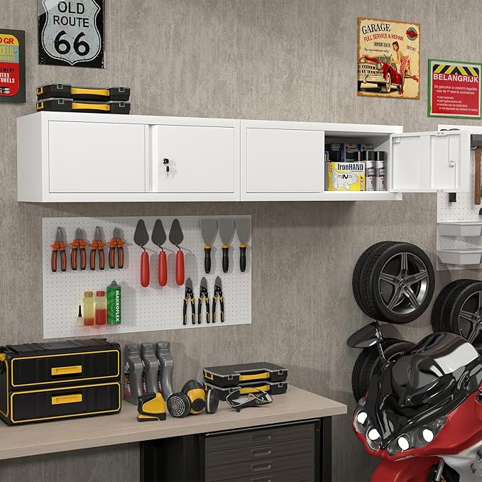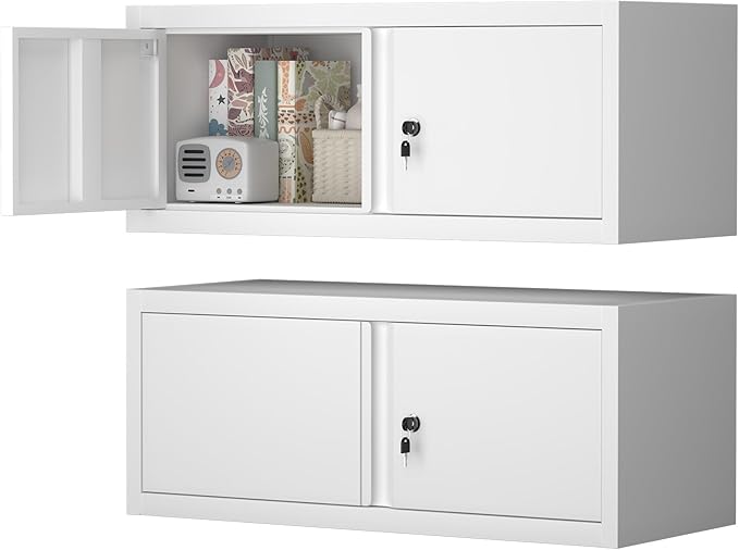 LUCYPALGarage Wall Cabinet with Doors,Metal Locking Storage Cabinet,Floating Tool Cabinet for Kitchen,Garage,Workshop,Warehouse(12.8" H,White)