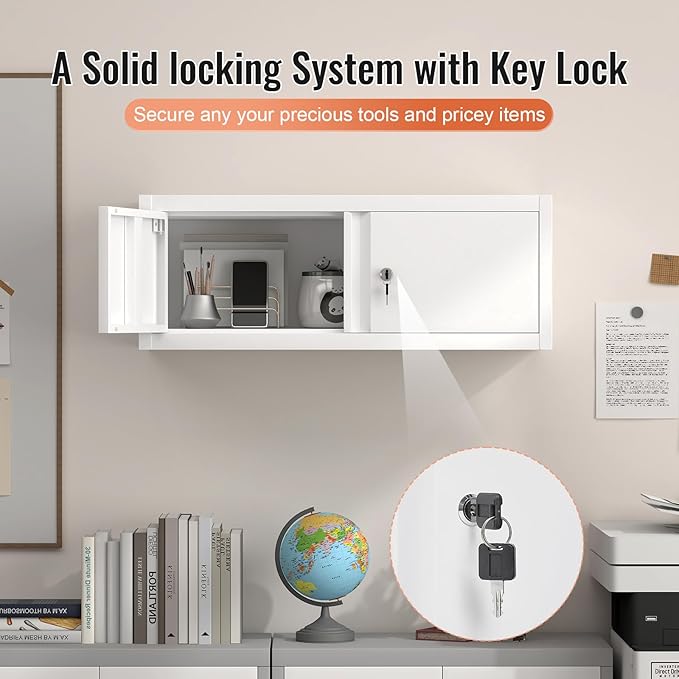 - 『HANGING WALL CABINET』 31.5"W x 11.8"D x 12.8"H-small floating tool cabinet can effectively utilize the upper wall space, providing you with more storage space. Safety locked cupboards allow you to store garage tools to keep children and pets from touching them