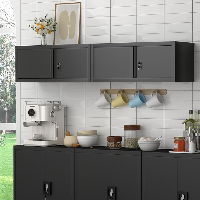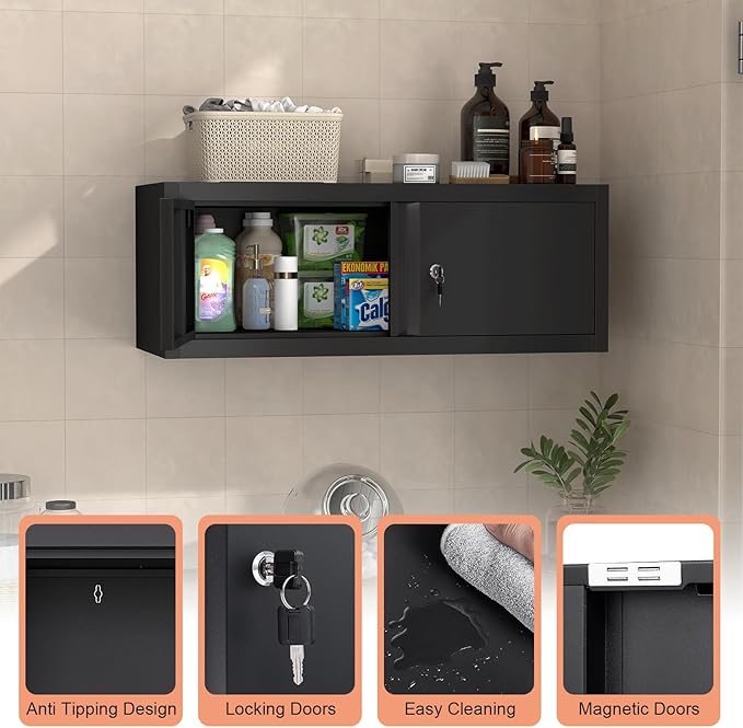 LUCYPAL Metal Garage Storage Cabinets,12.8" H Metal Wall Cabinet with Locking Doors,Upper Tool Cabinet with Shelf for Home Office,Kitchen,Garage,Workshop,Black