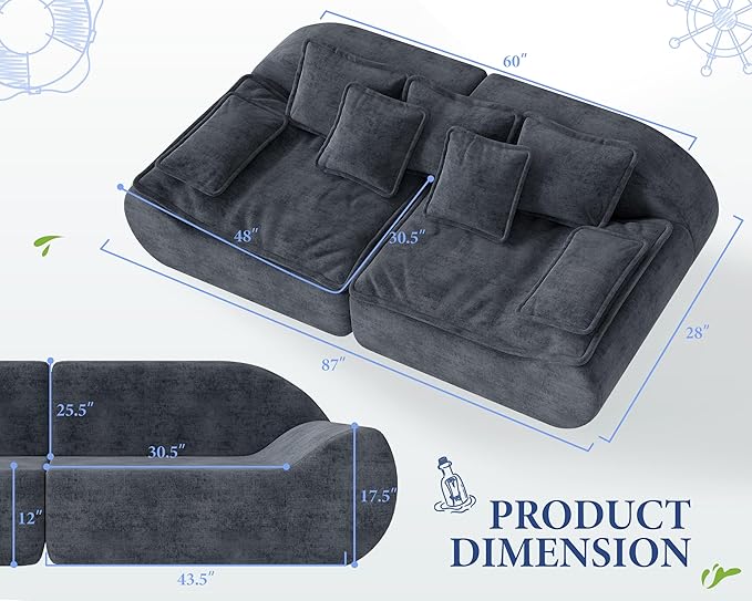 - No Assemble Required: Our sofas for living room are designed to be ready to use right out of the box, with no assembly required. The sofa modules will slowly expand after being unpacked, let it absorb air for about 2 to 3 days to restore it to its original status.