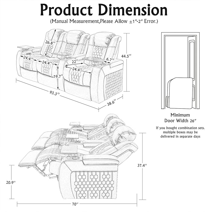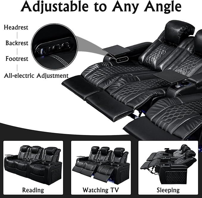 - Smart Console Design: The middle seat includes a backrest dropdown console with convenient tabletop functionality, cup holders, reading lights, and outlets, making it an ideal choice for those looking for versatile couches for living room or home theater seating.