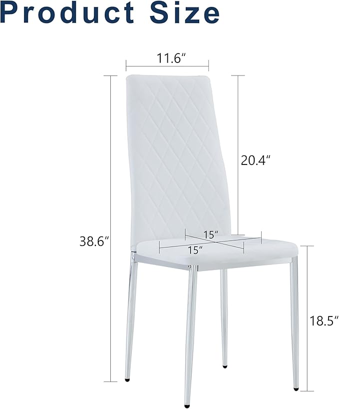 JT Modern Minimalist Dining Chair Fireproof Leather Sprayed Metal Pipe Diamond Grid Pattern Restaurant Home Conference Chair Set of 4 Or 6 (8, White)